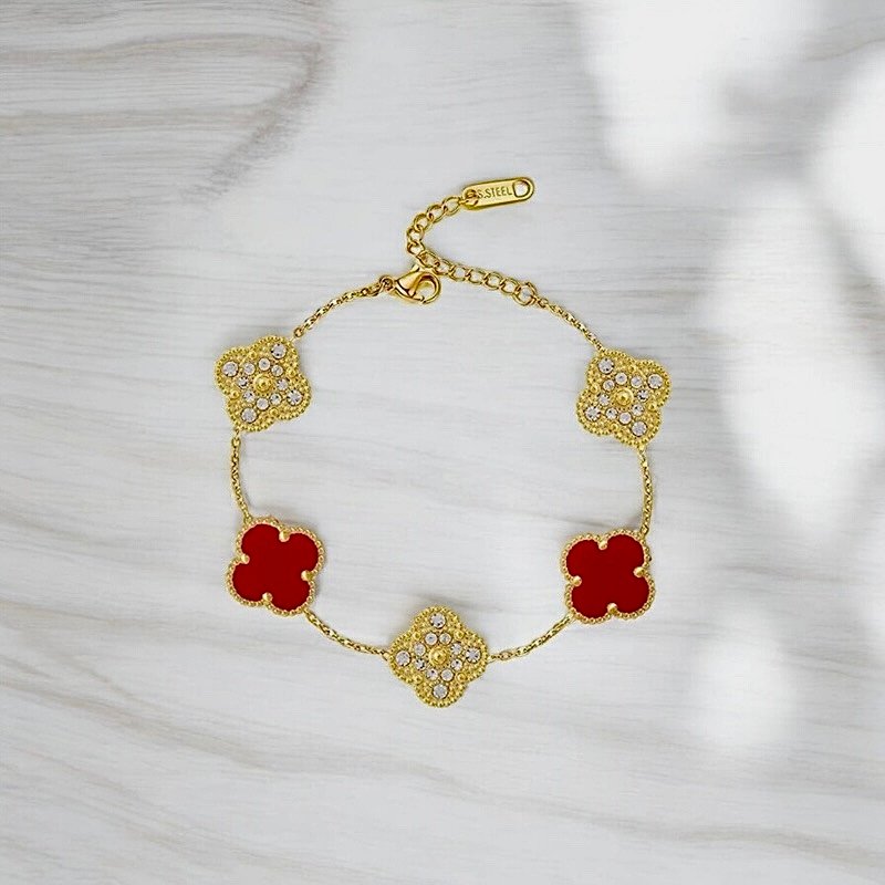 Lila Zircon 15mm Clover Non Tarnish Stainless steel bracelet, hypoallergenic, suitable for everyday wear.
