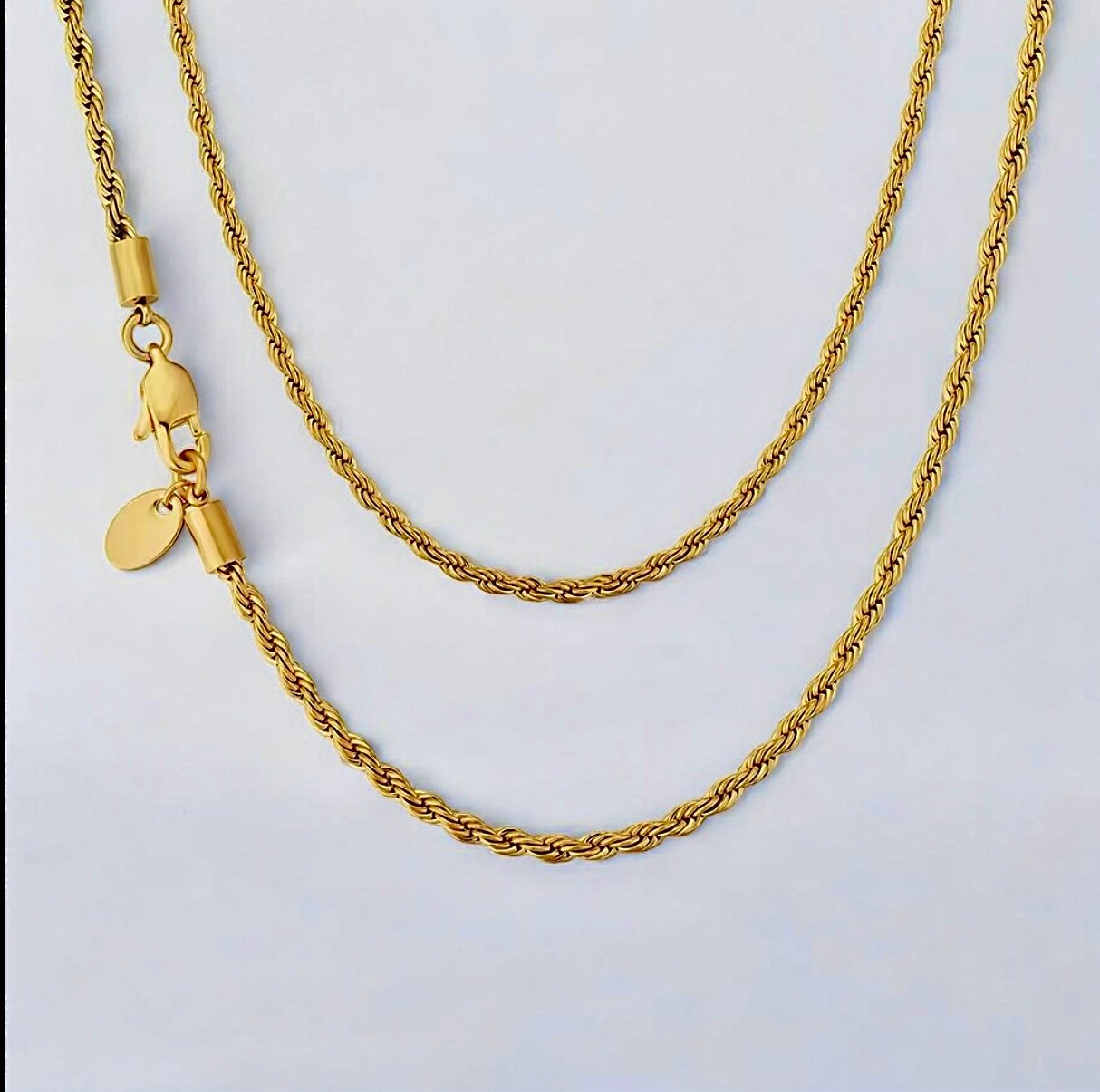 Vintage Elegant strong & durable stainless steel Rope necklace , 18k gold plated ,sleek design hypoallergenic, non tarnish , suitable for everyday wear.