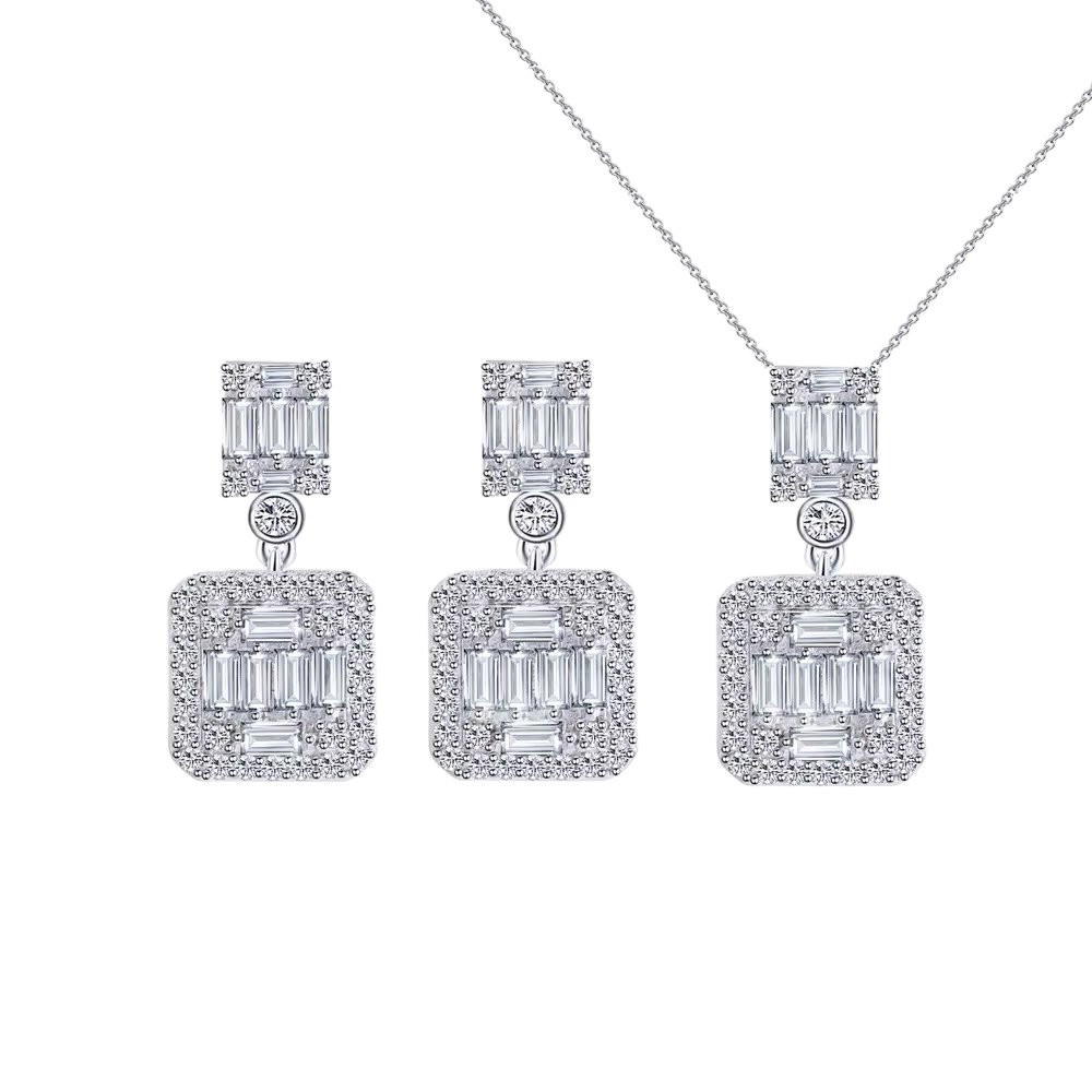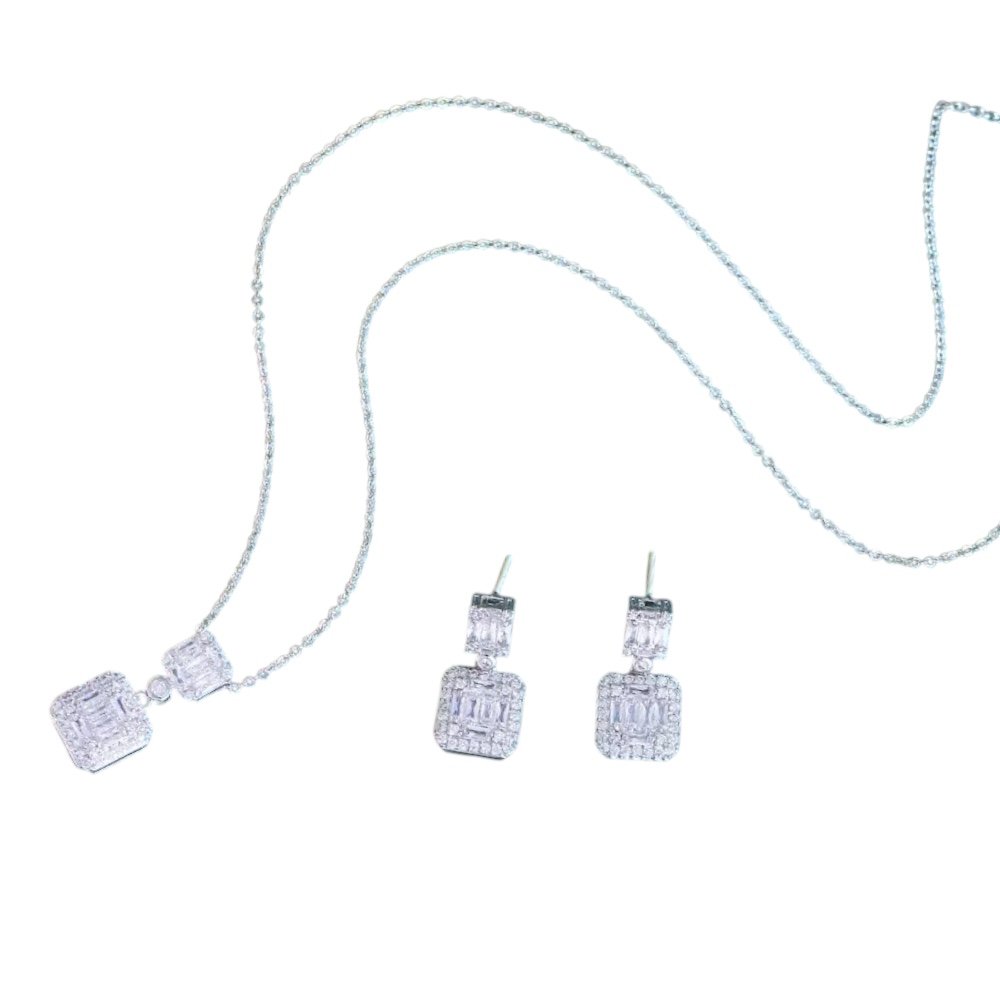 Jewelry Type: 925 Silver Jewelry Shape :Square Colour : Silver Stone :Zircon Style : Bridal Set ,Stylist , Trendy