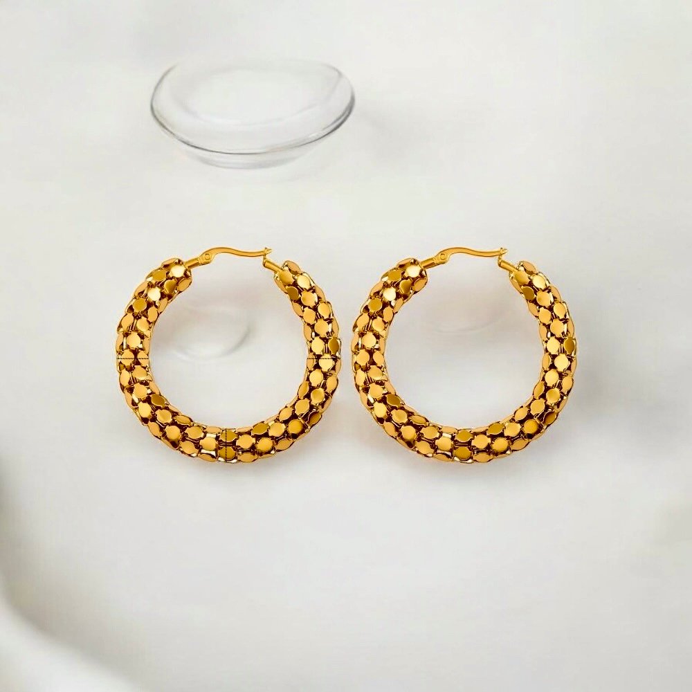 Elegant gold plated earring , hypoallergenic, suitable for everyday wear.