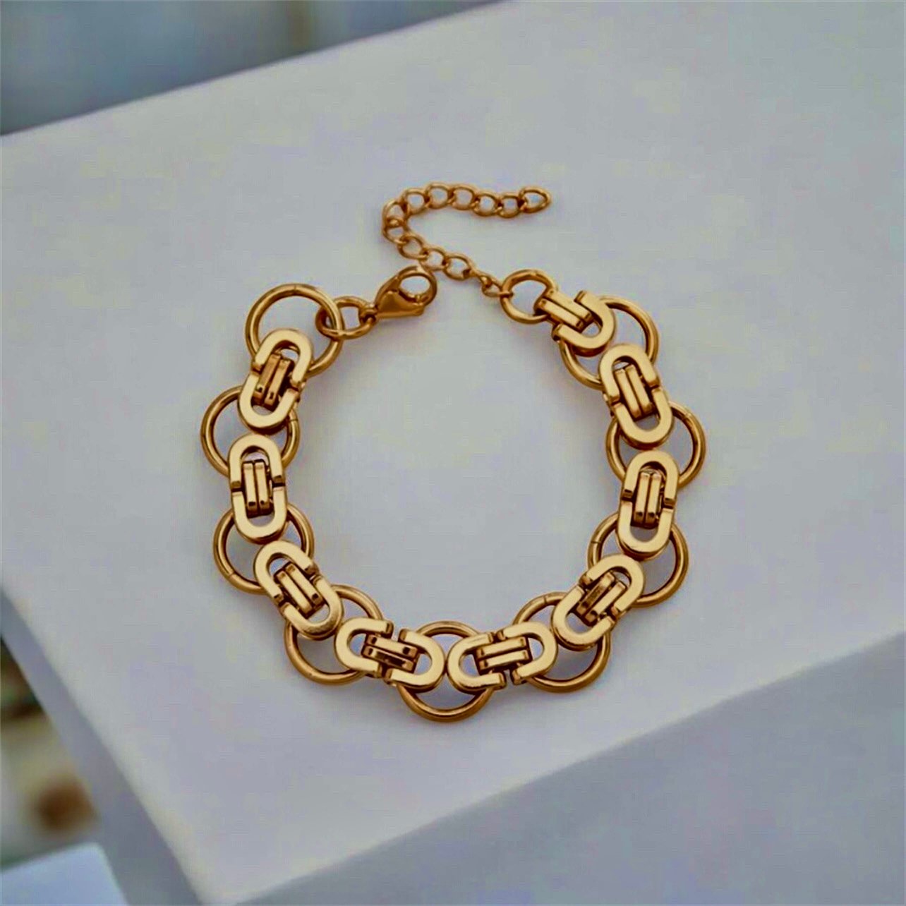 Elegant stainless steel bracelet, hypoallergenic, suitable for everyday wear.